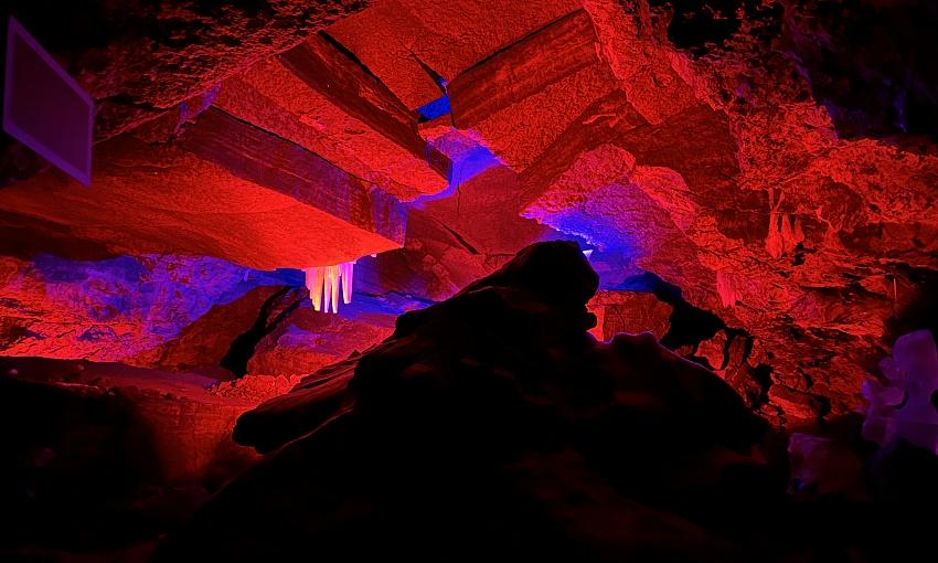 Разноцветная подсветка гротов создает фантастические кадры, особенно если подсветить детали фонариком. Ледяные образования лучше всего снимать на контрасте света и тени.