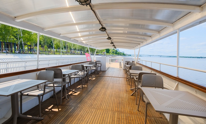 Вместимость до 100–120 гостей на прогулке, достаточная площадь для танцев, шоу-программы, фото-зон и активностей.