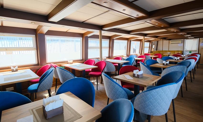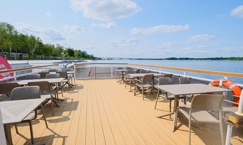 «Ягошиха» — просторный двухпалубный теплоход, отлично подходящий для больших и активных выпускных программ. Судно обладает широкой верхней палубой, где легко организовать дискотеку, командные игры или интерактивы. На главной палубе удобно разместить гостей за столами или оборудовать зону для конкурсов и выступлений ведущего.